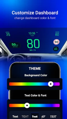 Преобразете таблото на автомобила си с дигитален скоростомер, прожектиран върху предното стъкло. Насладете се на зашеметяващи теми и персонализирани настройки. Получавайте предупреждения за скорост, следете управлението си и записвайте изминатото разстояние. Удобно и интелигентно шофиране.