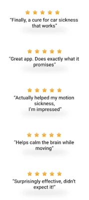 Страдате от прилошаване в кола, докато използвате телефона си? MotionEase предлага облекчение, като предоставя визуални сигнали за движение на превозното средство. Те помагат на мозъка ви да разреши конфликтни сензорни сигнали и да намерите спокойствие по време на път.