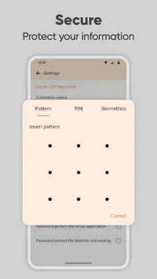 Вашата поверителност и сигурност са от първостепенно значение за Прост файлов мениджър. Приложението е оборудвано с мощни защитни функции, които включват заключване с шаблон, ПИН код или биометрични данни за защита на скрити елементи, цели папки или за ограничаване на достъпа до самото приложение. За максимална сигурност, разрешението за пръстови отпечатъци може да бъде изискано за тези ключови операции. Едно от най-големите предимства е, че Прост файлов мениджър работи изцяло офлайн, без никакъв достъп до интернет, гарантирайки несравнима конфиденциалност на вашите данни. Освен това, то предлага изчистен Material Design интерфейс, тъмна тема и възможност за персонализиране на цветовете, без никакви реклами или излишни разрешения. Това отворено приложение е създадено да предостави стабилно и сигурно потребителско изживяване, където вие сте винаги на първо място.