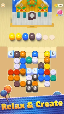 Представете си свят, в който всяка оплетена нишка се превръща в шедьовър. Играта Thread Jam от SayGames ви кани на уникално пътешествие, където ще превърнете объркани кълба цветни конци в изящни бродерии. Вашата задача е да подредите живите нишки по групи, за да запълните съответните зони върху плата, докато преминавате през безброй нива. Потопете се в творческата радост от създаването на пъстри картини, съчетавайки я с умственото предизвикателство да сортирате и поставите всяко кълбо прецизно.